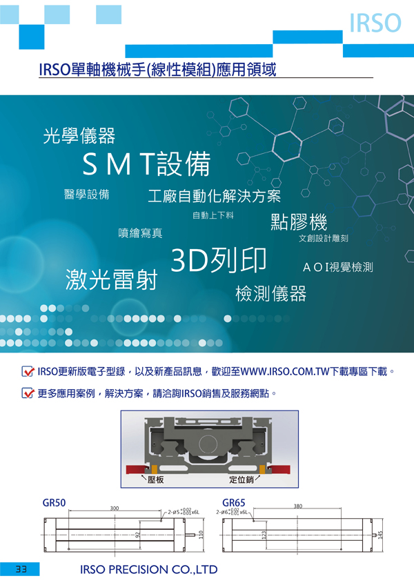 飛梭IRSO系列產(chǎn)品有直線(xiàn)導(dǎo)軌、精密模組、氣動(dòng)滑臺(tái)等,產(chǎn)品可廣泛應(yīng)用于電子半導(dǎo)體設(shè)備、航空、醫(yī)療器械、汽車(chē)行業(yè)、搬運(yùn)和輸送機(jī)械、手機(jī)制造、自動(dòng)化設(shè)備及產(chǎn)業(yè)機(jī)械等,以及所有需求精密直線(xiàn)傳動(dòng)、控制及定位智能制造、智慧工廠(chǎng)等領(lǐng)域。